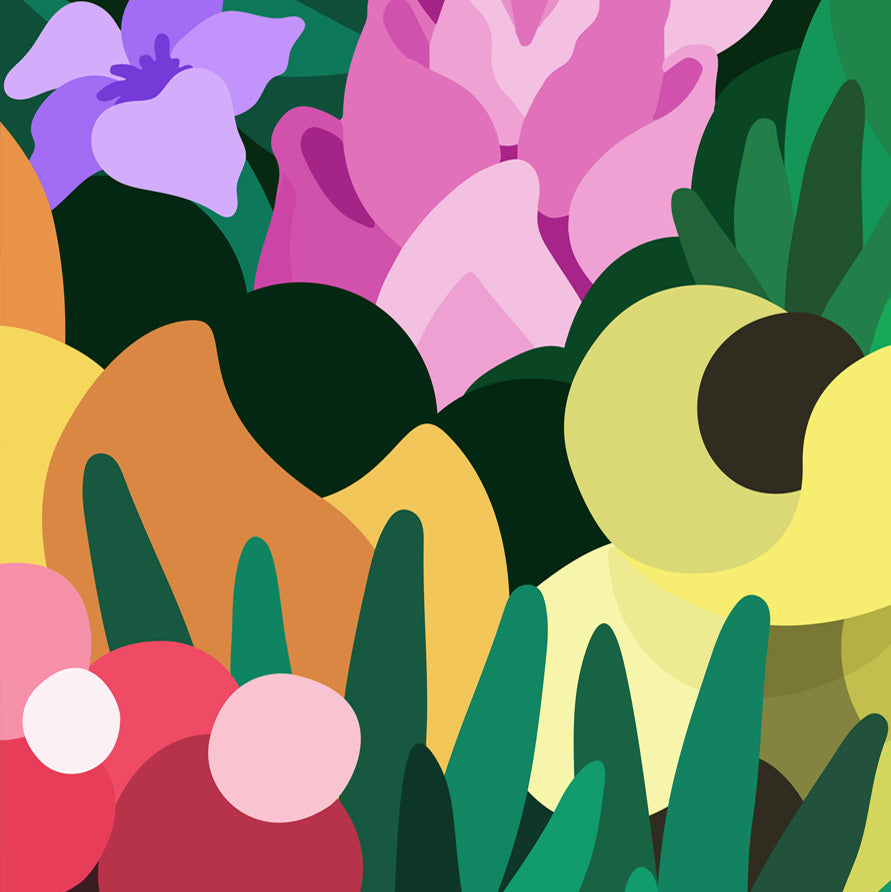 Curious plants in bright tropical colours, Lost in Eden is a joyful exploration of a fantastical Australian landscape through a playful, naïve lens.